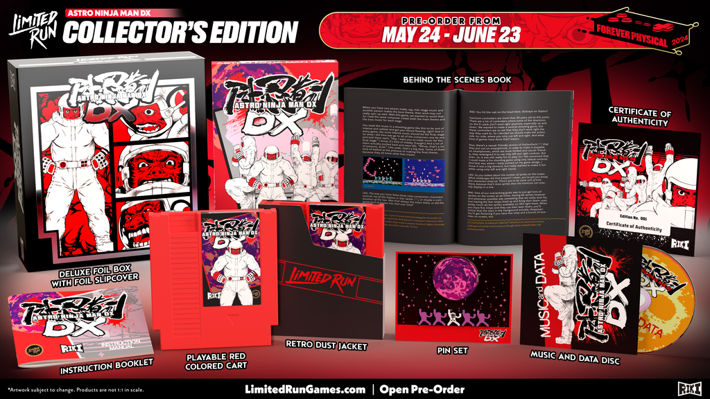Astro Ninja Man DX on a physical cartridge for the NES. This is an open pre-order for a limited time.