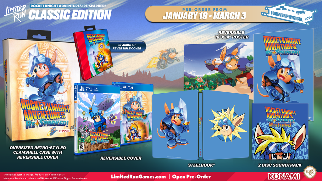Rocket Knight Adventures: Re-Sparked is on a region-free physical disc for the PlayStation 4. Also works on the PlayStation 5. This is an open pre-order for a limited time.
