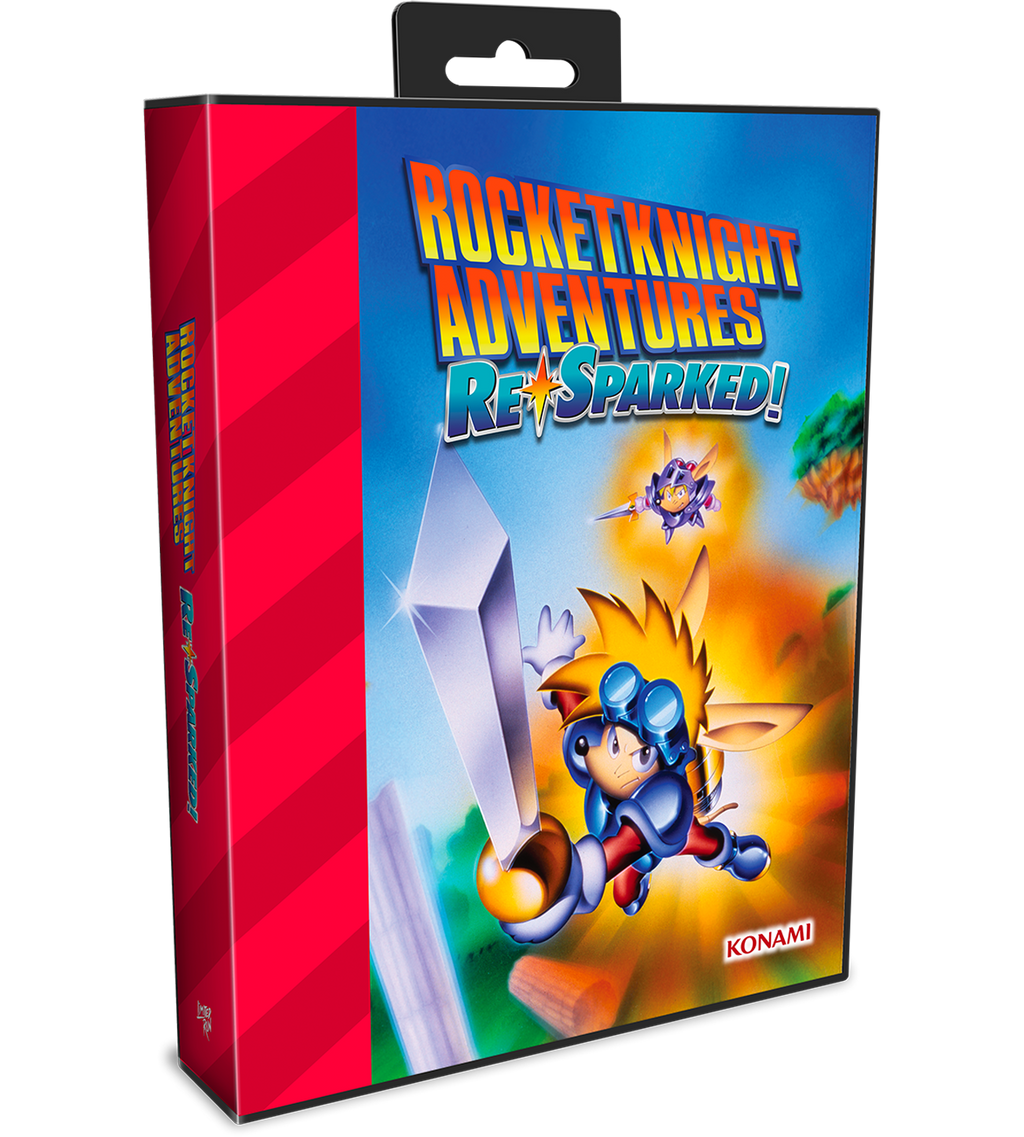 Rocket Knight Adventures: Re-Sparked contains Rocket Knight Adventures, Sparkster: Rocket Knight Adventures 2, and Sparkster (SNES) in one package and tons of special extras, like a new animated intro, rewind features, boss rush mode, and a museum featuring never-before-seen content!