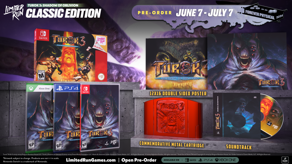 Turok 3: Shadow of Oblivion Remastered is on a region-free physical cart for the Nintendo Switch. This is an open pre-order for a limited time.