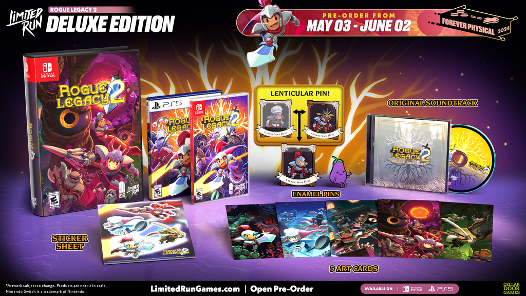 Rogue Legacy 2 is on a region-free physical cart for the Nintendo Switch. This is an open pre-order for a limited time.