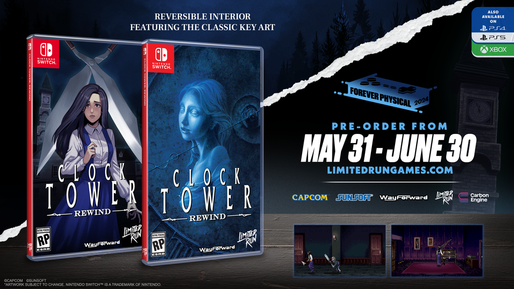 Clock Tower Rewind is on a region-free physical cart for the Nintendo Switch. This is an open pre-order for a limited time.