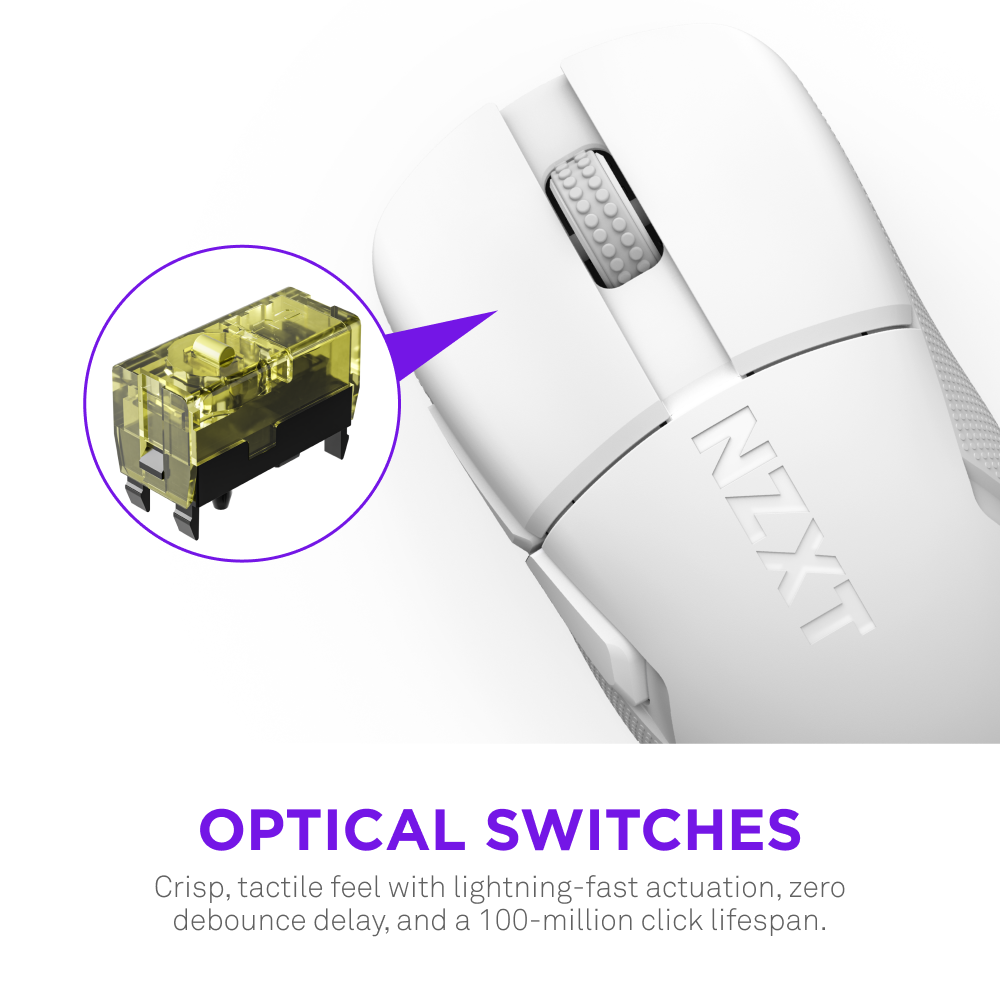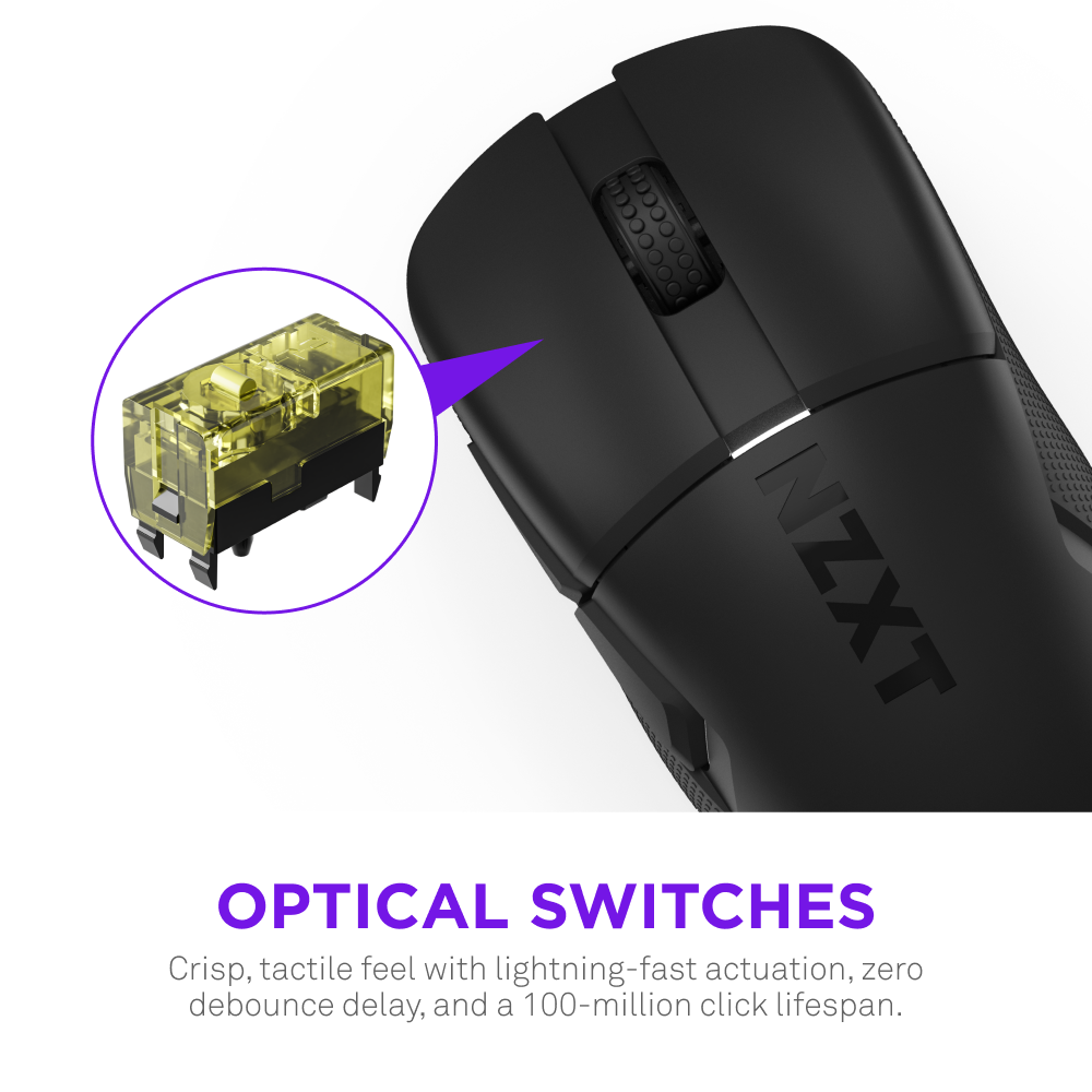 - Optical Switches: Rapid 0.2 ms response time with no double-clicking, pre-travel, or debounce delay, plus a 100-million click lifespan.